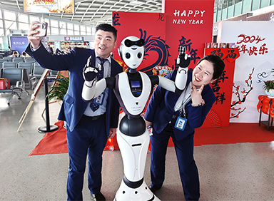 扬泰机场迎来智慧新助手:lewin乐玩人形机器人“小飞”和数字人客服上岗服务